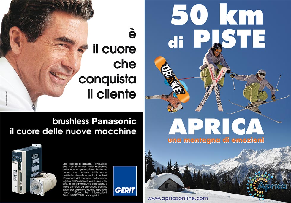 Aprica "una montagna di emozioni" pay off dato anche a prestito alla pubblicità della Valtellina